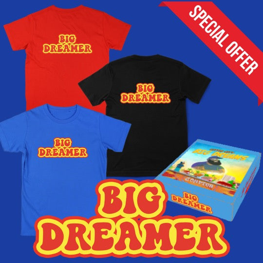 3 Big Dreamer Tees + 1 Hard Book Cover. Empower young minds with creativity, courage, and endless adventures!